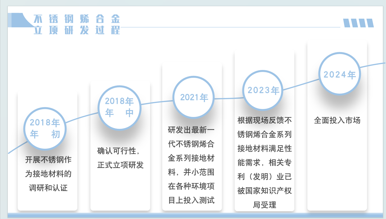 采用外層0.7mm不銹鋼(標(biāo)號(hào)根據(jù)使用環(huán)境選擇)經(jīng)過(guò)石墨烯專(zhuān)有配方處理后包覆高導(dǎo)性的合金材(合金材表層也經(jīng)過(guò)石墨烯專(zhuān)有配方的涂層處理)經(jīng)過(guò)激光焊、拉拔、退火再拉拔、再退火形成的一種導(dǎo)電性?xún)?yōu)越、耐腐蝕能力強(qiáng)的一種新型接地材料。